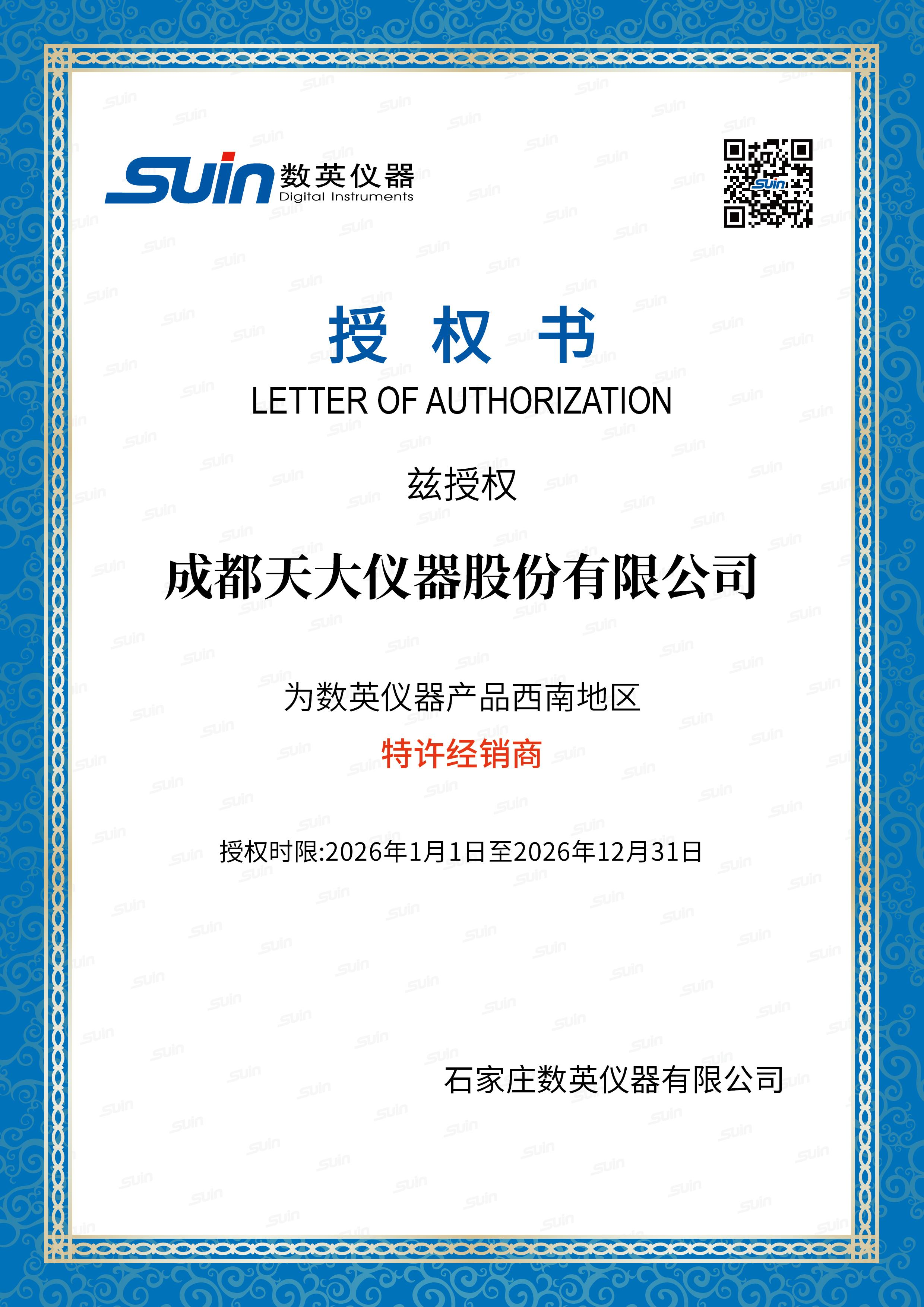 成都天大仪器股份有限公司正式成为数英仪器授权代理商—共筑国产化测试仪器新生态